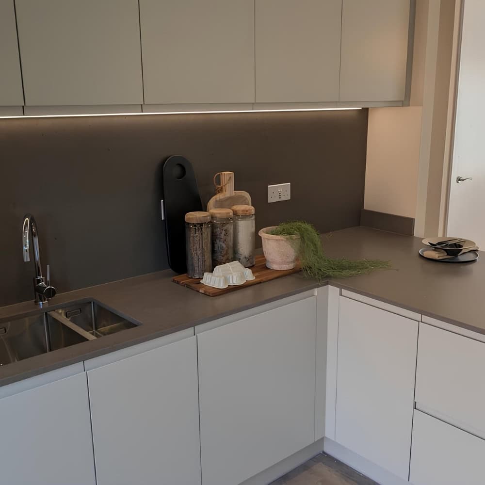 Once cabinets are fully fitted and level, we carry out precise on-site templating. Accurate measurements ensure clean joints, exact cut-outs and a perfect fit against walls and units, reducing the risk of issues during installation.