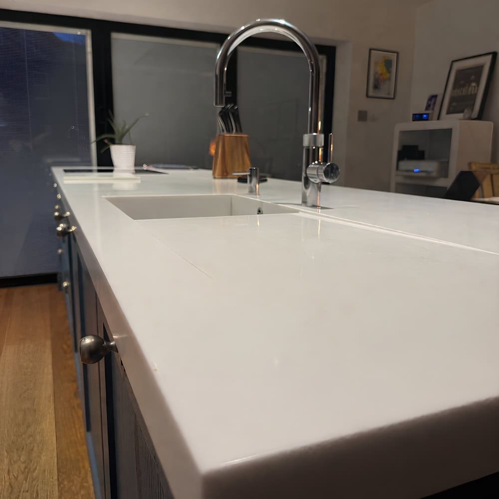 One of the defining advantages of solid surface worktops is the ability to create near-invisible joins. Unlike natural stone, solid surface can be bonded and finished so that seams blend smoothly, making it ideal for larger installations and continuous surfaces.